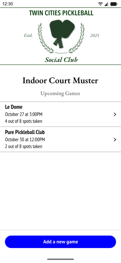 A pickleball group asked me to design a logo for the team and also to design a way for them to reserve courts based on how many people signed up. Each court had a leader requirement – the leader was tasked with reserving the actual court for the team they were on.